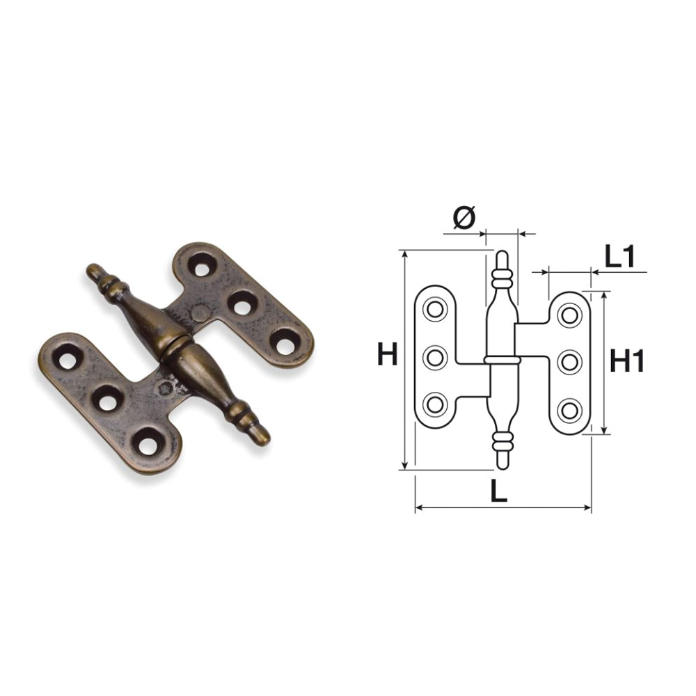Pensata per il montaggio sul lato sinistro della porta, questa cerniera si integra perfettamente con infissi in legno, contribuendo a un’estetica calda e raffinata. La struttura robusta in ottone e il perno da 10 mm assicurano un’apertura fluida e una chiusura stabile, ideale per applicazioni residenziali o restauri.