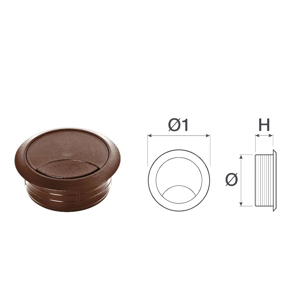La bocchetta passacavi con diametro 80 mm e finitura marrone è una soluzione pratica ed elegante per l’organizzazione dei cavi su scrivanie, tavoli da lavoro e mobili tecnici. Grazie al foro ampio, consente il passaggio ordinato di più cavi, migliorando la funzionalità e l’estetica dell’ambiente.