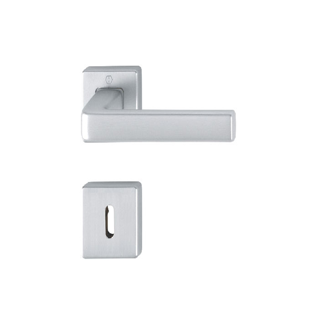 La finitura cromo satinato F94-1 aggiunge un tocco di raffinatezza e si adatta facilmente a diversi contesti d’arredo, sia in ambienti privati che professionali. Progettata per serrature con foro chiave tradizionale, la maniglia DUBLIN garantisce solidità, comfort e durata, nel pieno rispetto della qualità firmata Hoppe.