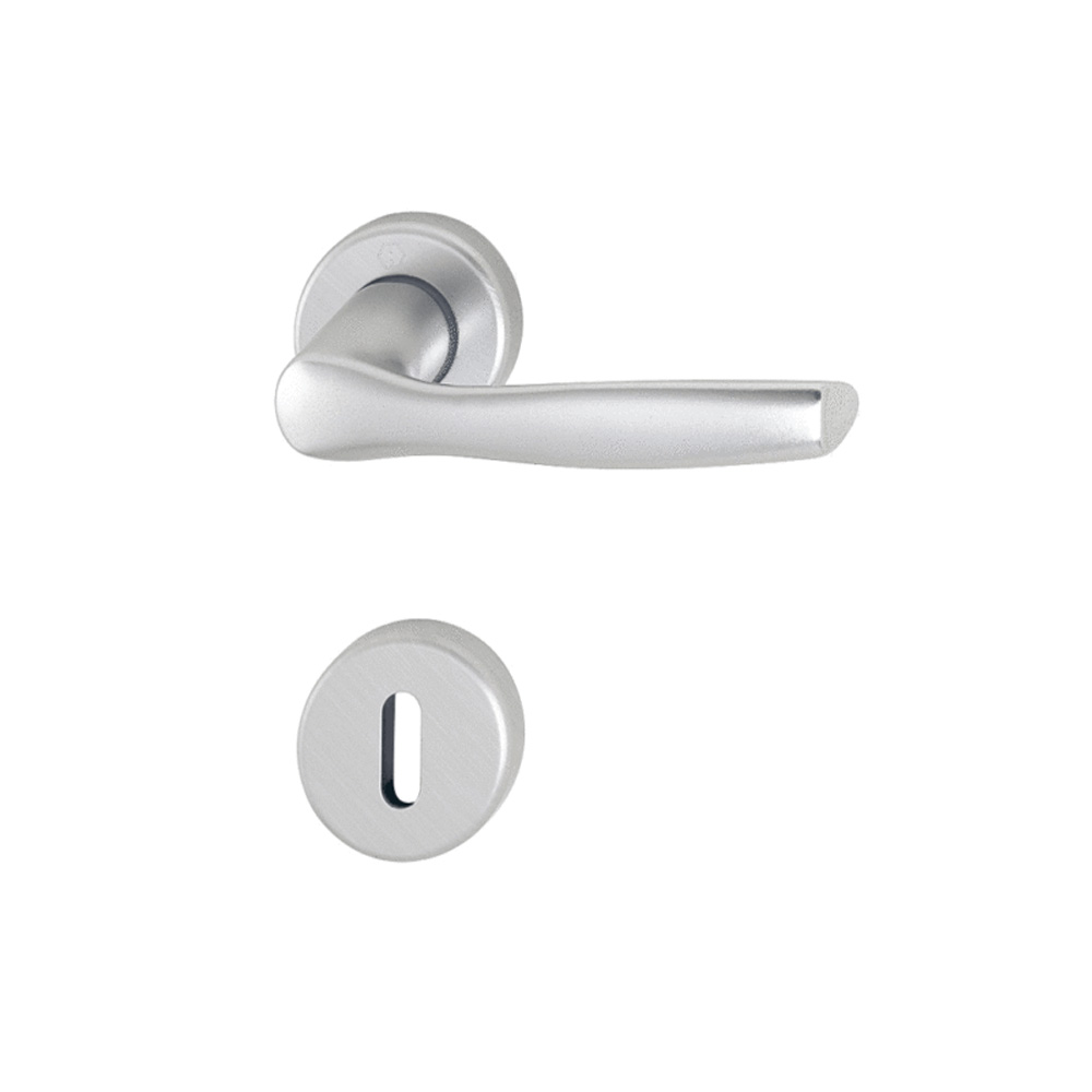 La maniglia Milano Hoppe con rosetta e bocchetta foro chiave e finitura argento è una scelta versatile e raffinata per porte interne. Il suo design essenziale e lineare si adatta perfettamente a diversi stili di arredamento, garantendo un risultato estetico sobrio ma di grande effetto.