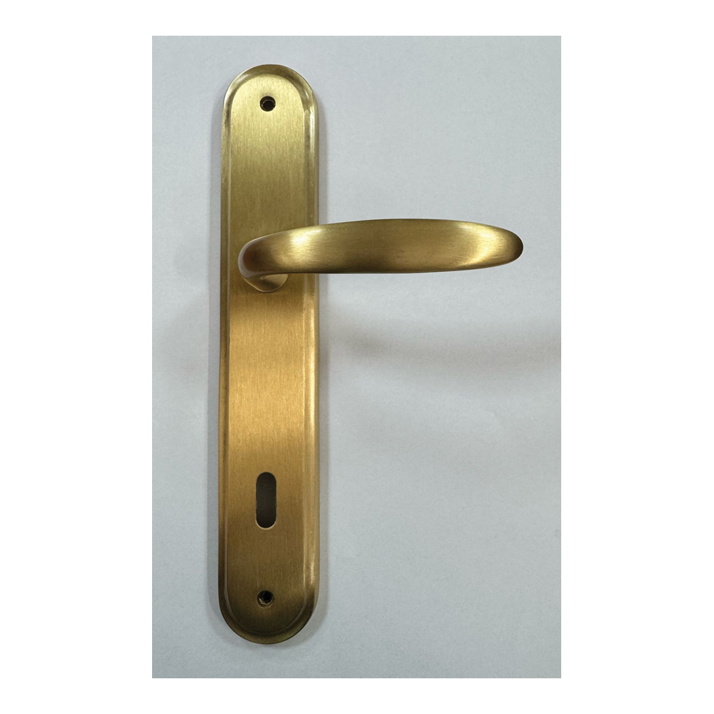 Il design essenziale della leva si abbina alla placca lunga, creando un insieme armonioso e funzionale. L’interasse da 70 mm la rende compatibile con le serrature standard per porte interne. Realizzata in ottone di alta qualità, questa maniglia è progettata per garantire solidità, durata e stile senza tempo.