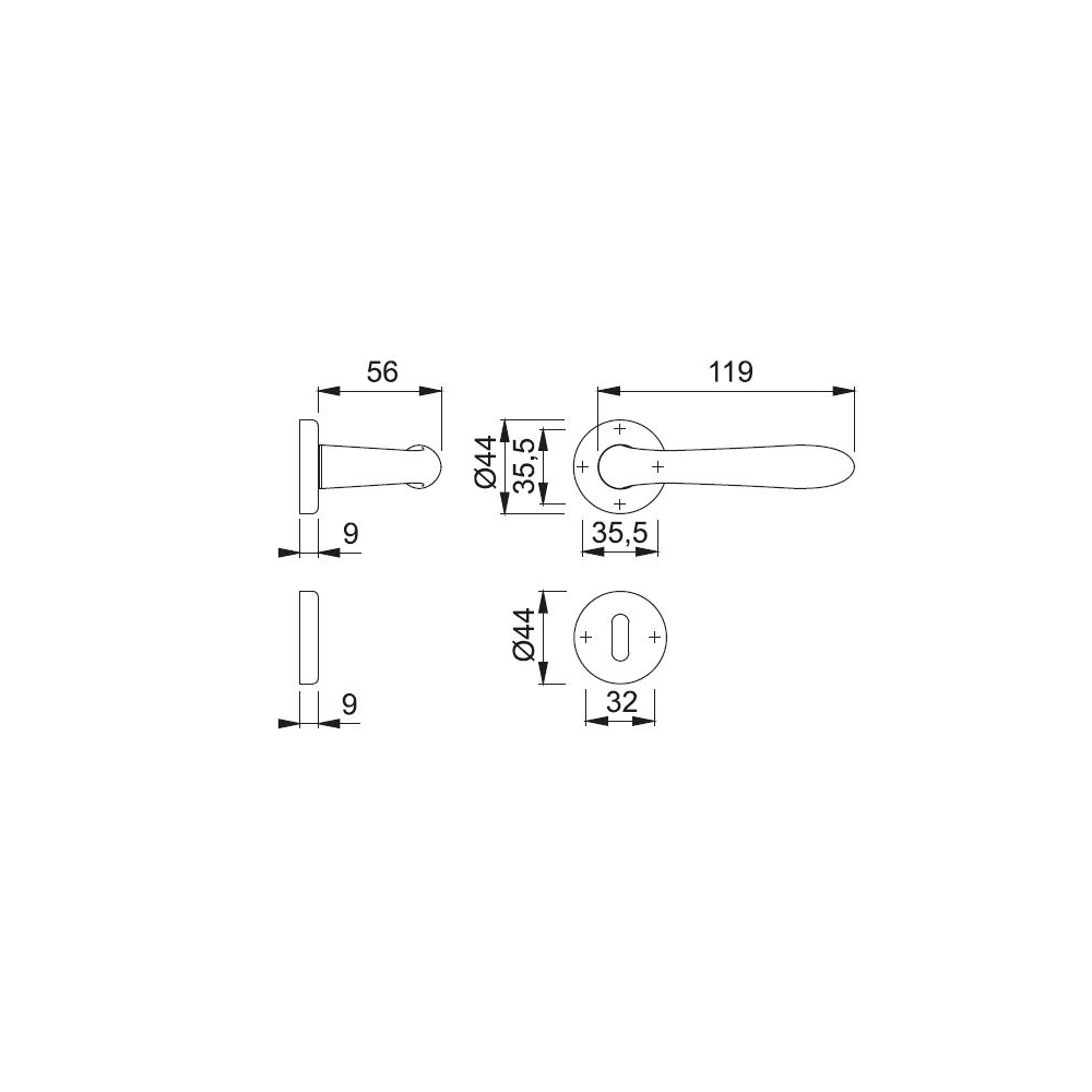 Il foro chiave integrato nella bocchetta consente l'installazione di serrature con cilindro europeo, assicurando sicurezza e praticità. La forma ergonomica della maniglia Santiago garantisce una presa comoda e sicura, mentre la rosetta ne valorizza ulteriormente il design, offrendo un supporto stabile e discreto.