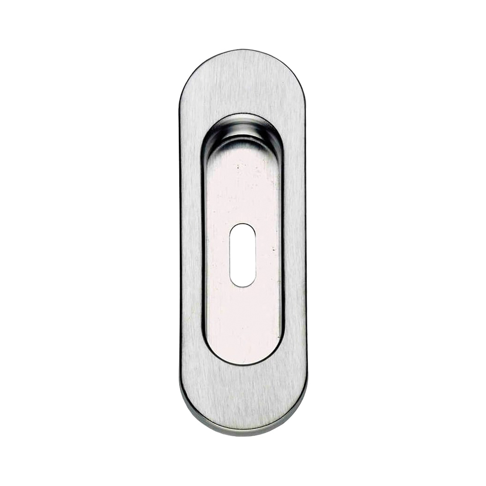 La maniglia ad incasso ovale con foro chiave in cromo satinato, firmata Cottali, è una soluzione elegante e funzionale per porte scorrevoli in ambienti moderni o sobri. La forma ovale e compatta si inserisce con discrezione nel pannello porta, mantenendo una linea pulita e minimale.