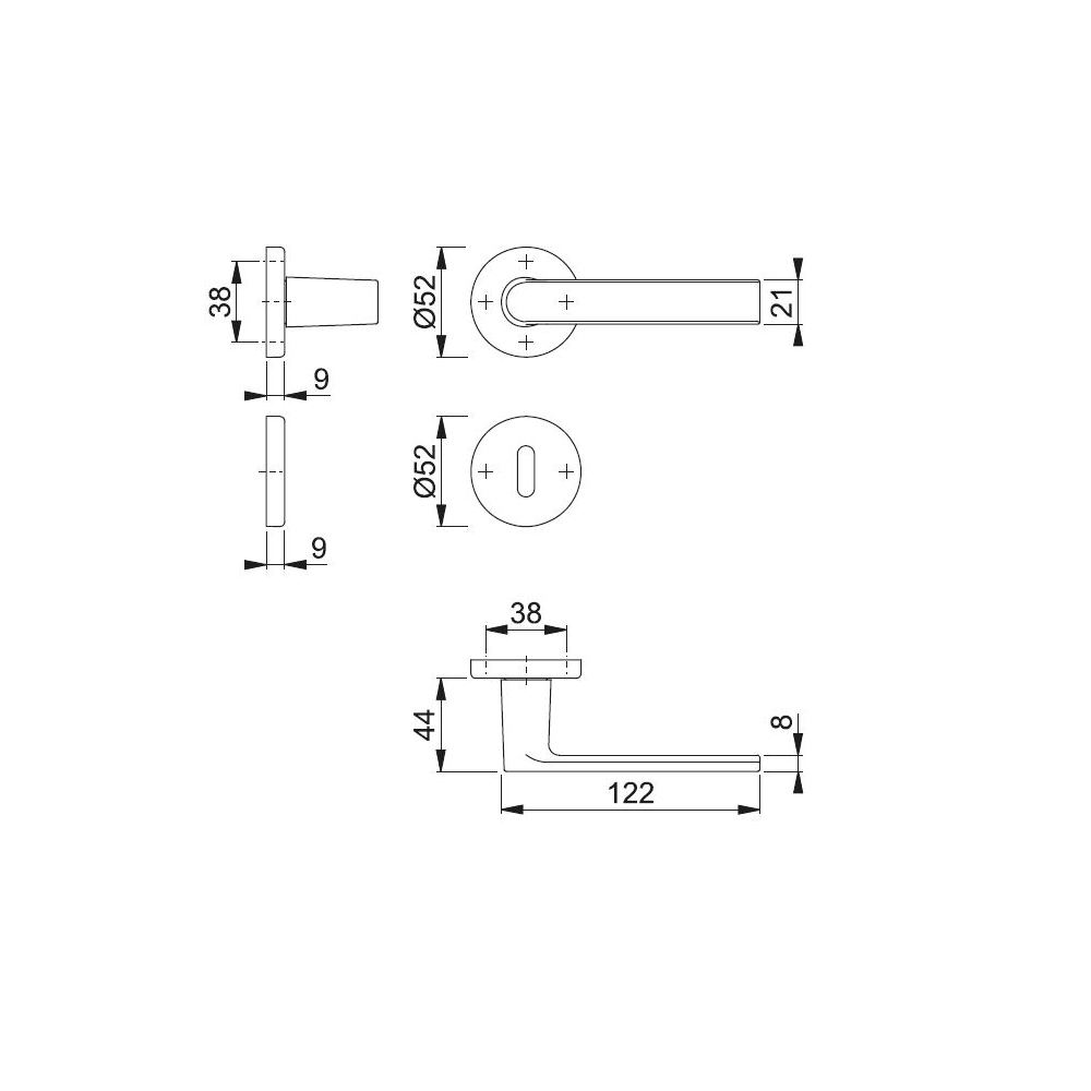 La maniglia Los Angeles di Hoppe con rosetta e bocchetta foro chiave è un connubio perfetto tra design essenziale e qualità costruttiva.