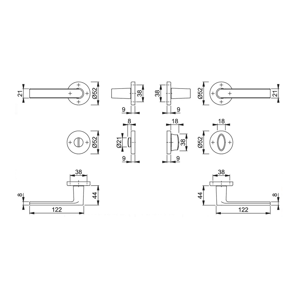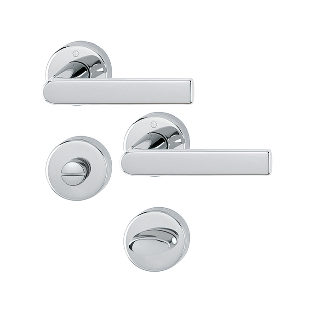 La maniglia Los Angeles di Hoppe con rosetta e bocchetta WC in finitura cromo è pensata per ambienti bagno o locali di servizio, dove è richiesta una chiusura semplice e funzionale.
