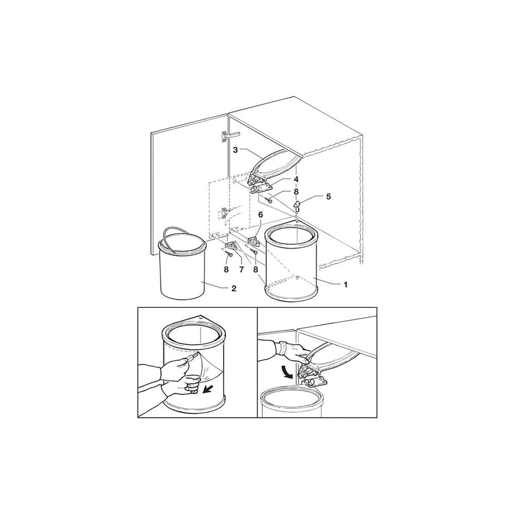 Incluso nella confezione: pattumiera, coperchio, struttura di fissaggio e viti di montaggio