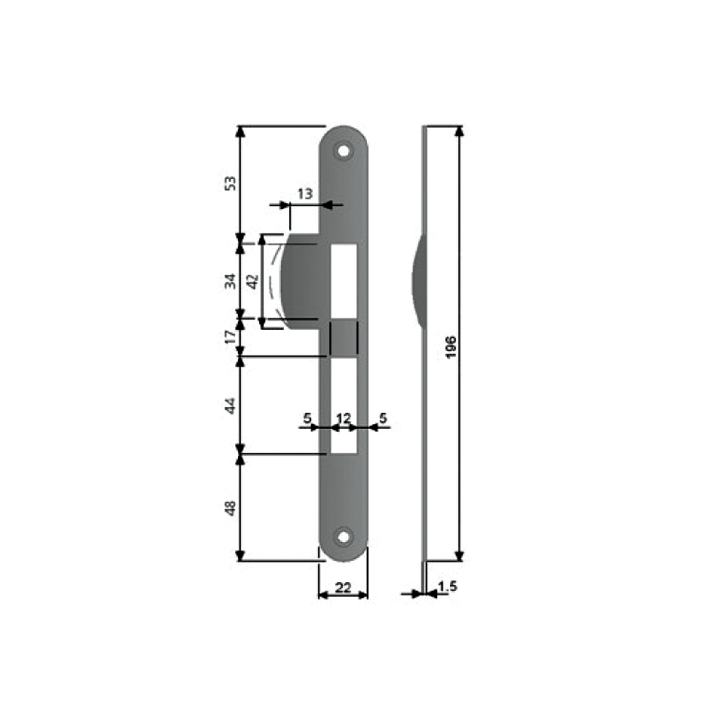 INCONTRO SERRATURA CENTRO SCROCCO E CATENACCIO 22X196 ALETTA SX NICHELAT