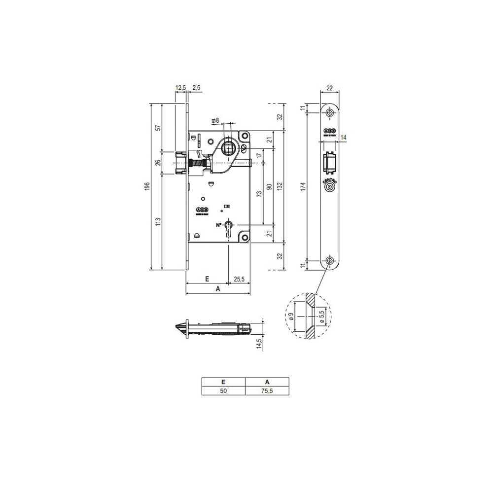 Serratura AGB Centro Solo Scrocco quadro bagno – Frontale 22x196 mm