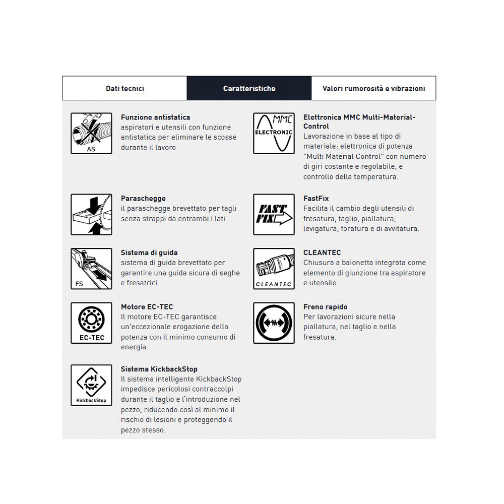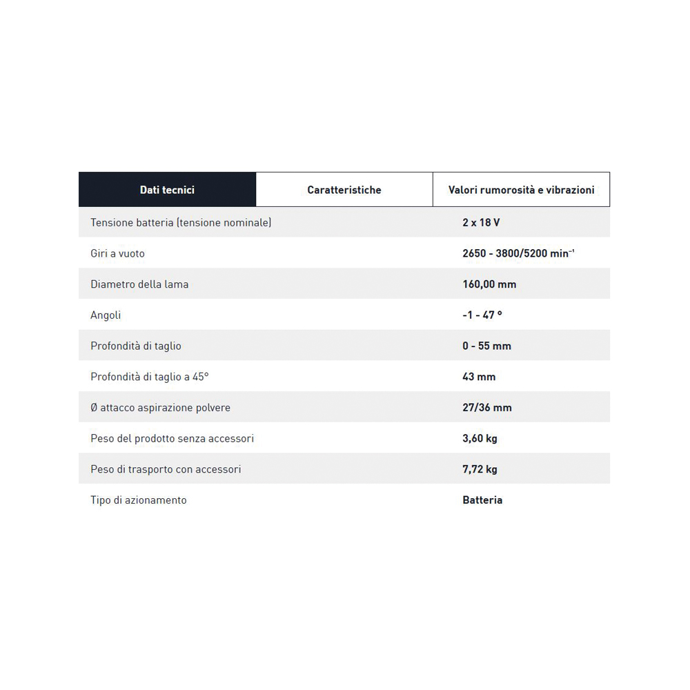 Spesso, un millisecondo fa la differenza: il contraccolpo è la causa più comune di lesioni gravi con una sega ad affondamento. Ecco perché il nostro esclusivo KickbackStop ferma la lama della nostra sega ad affondamento a batteria più velocemente di un battito di ciglia; quindi, non solo protegge il vostro pezzo, ma riduce anche il rischio di lesioni alle mani. Inoltre, ora è possibile eseguire tagli precisi in modo fino a due volte più veloce e potente con una maggiore autonomia della batteria. In combinazione, la nostra nuova generazione di lame consente le massime prestazioni di taglio e una qualità perfetta. Il sistema di taglio è completato da accessori di sistema intelligenti come binari di guida, battuta angolare, paraschegge e tavolo di taglio.