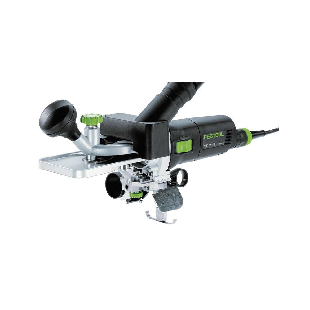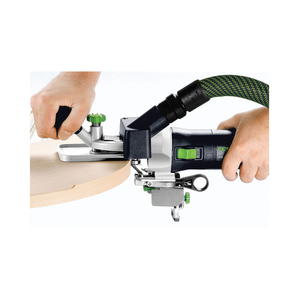 Convincente in rettilineo e in curva: l'OFK 700 è il multitalento tra i rifilatori. Rende la fresatura a filo di spigoli e superfici sporgenti un semplice esercizio. Non importa se il pezzo in lavorazione è di piccole o grandi dimensioni, se i bordi sono arcuati o rettilinei. L’ampio piano di fresatura, rapidamente orientabile, fornisce in ogni posizione di lavoro una superficie di appoggio stabile e una guida sicura della macchina.