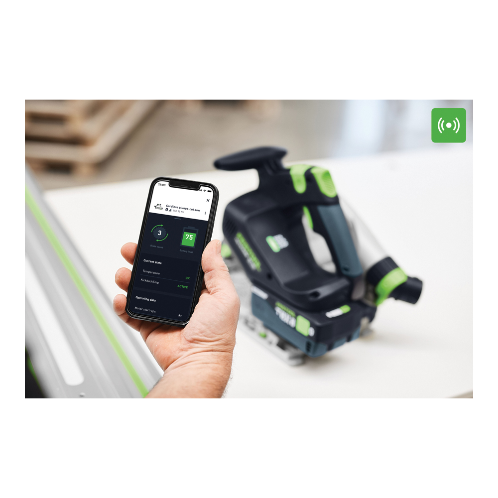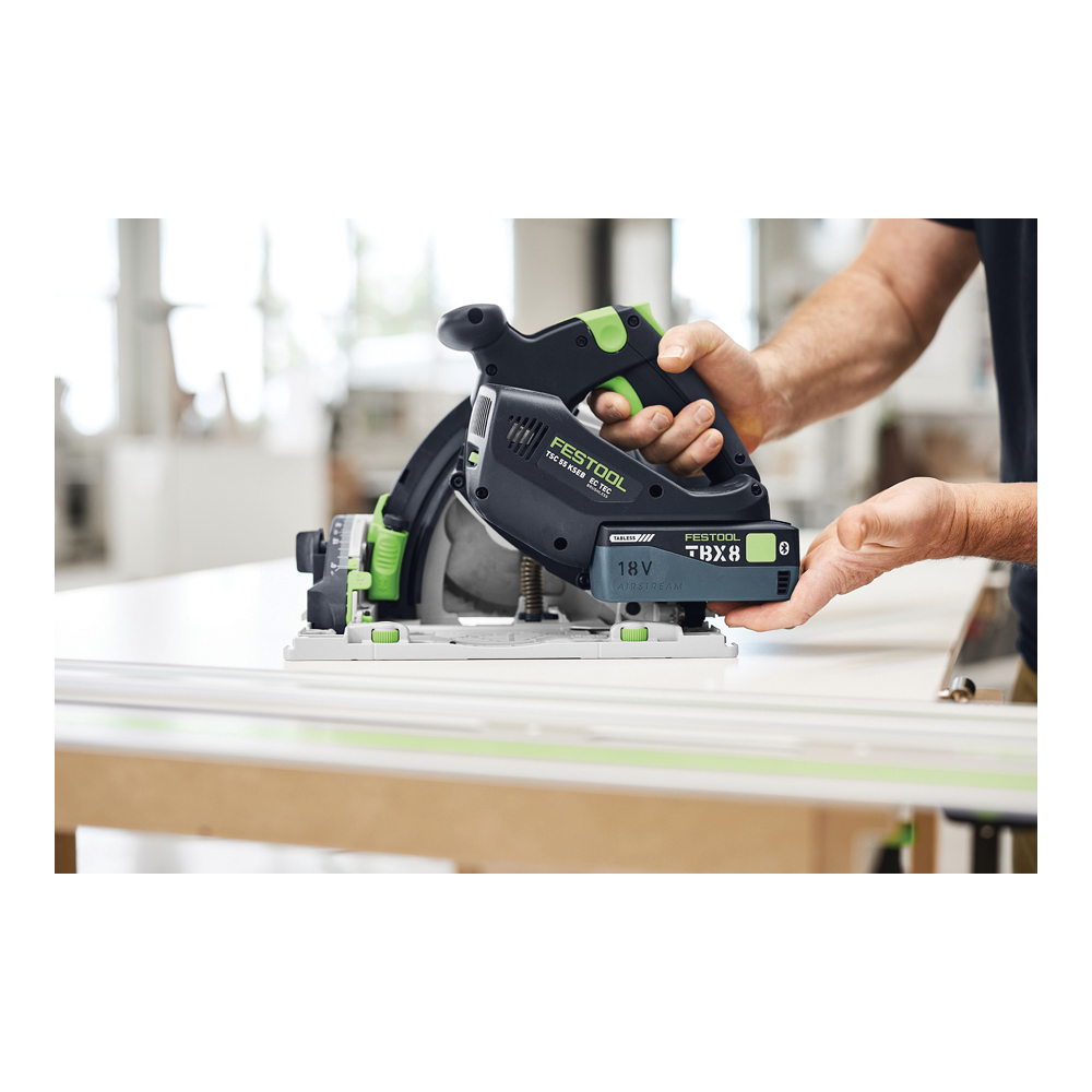 Dal 1980, puoi contare sulla qualità affidabile e sulla precisione assoluta delle seghe ad affondamento Festool. Il risultato di questa esperienza? Una sega ad affondamento a batteria di nuova generazione: versatile come il tuo lavoro, con la precisione a cui sei abituato. La TSC 55 KS ti offre tutta la potenza e la massima flessibilità nel tuo lavoro quotidiano: con una batteria, è subito pronta all'uso, è perfettamente maneggevole per supportarti in ogni applicazione. Sentirai tutta la sua forza, soprattutto in combinazione con la potente batteria da 8,0 Ah. In combinazione con le lame a taglio sottile da 1,6 mm, non solo otterrai prestazioni di taglio eccezionali, ma la speciale dentatura garantisce anche risultati di taglio particolarmente puliti. Il KickbackStop, basato su un sensore, protegge in modo affidabile dai contraccolpi durante il taglio o l'affondamento nel pezzo da lavorare, in modo da non dover rinunciare alla sicurezza. La tua esperienza di taglio è completata da accessori di sistema intelligenti: i binari di guida, gli arresti angolari e il piano di taglio assicurano risultati precisi anche nelle applicazioni più complesse, senza richiedere lunghe preparazioni o rilavorazioni.